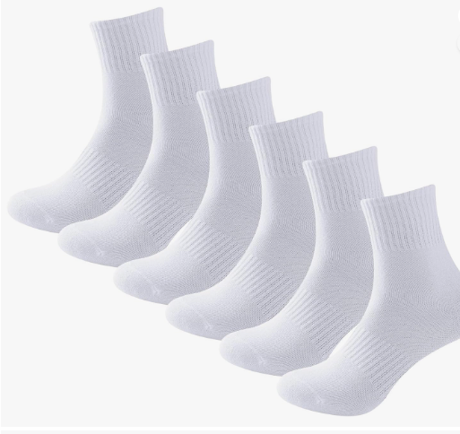 Calcetines deportivos para niños, color blanco y negro, uniforme escolar de algodón, paquete de 6 unidades, transpirable y absorbente del sudor